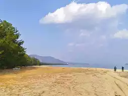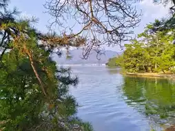 Amanohashidate is a narrow sandbar in northern Kyoto that separates Miyazu Bay, stretching approximately 3.6 kilometers and covered with pine trees. The name Amanohashidate means 'Bridge to Heaven,' as the sandbar looks like a pathway connecting the earth to heaven when viewed from the surrounding mountains.