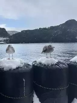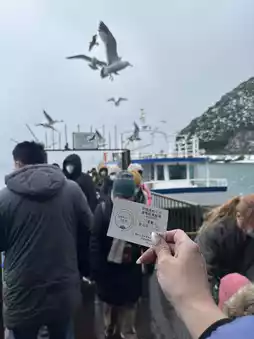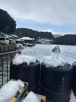 Feeding seagulls with shrimp crackers costs 100 JPY per pack