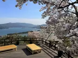 The Amanohashidate Landmark Trail, one of the most representative landmarks in the area, strolls along the entire trail, while enjoying the cherry blossom rain while overlooking the stunning Hashidate Bay.