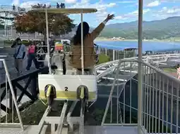 Within Amanohashidate Park, there is the Rotating Bridge, a fully red retro-style bridge that has been modified to rotate for passing boats.