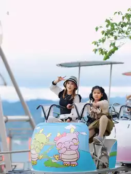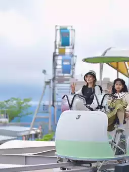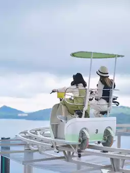 Upon reaching the top, you'll find the beautiful dragon-shaped island, which also houses an amusement park. A must-see is the scenic bike ride. The bikes are adorable, and each bike seats two people, making it a perfect two-way ride.