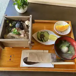 Food🍽️: "Aikura" in Udatsu street in Wakimachi, Mima city. I had the famous Awaodori chicken steamed in a bamboo steamer! It was very filling and delicious!