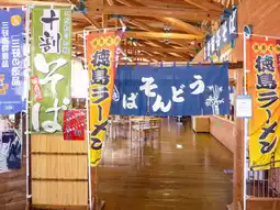Located about a 3-minute walk from Vine Bridge, the Vine Bridge Dream Stage is a large tourist facility that includes an event plaza, a product hall, and the Vine Bridge Pavilion cafeteria. The product hall features thousands of Tokushima specialties, making it a perfect place to explore and find treasures. When you get hungry, you can head to the cafeteria to enjoy local delicacies such as Iya soba, soba rice porridge, and Tokushima ramen.