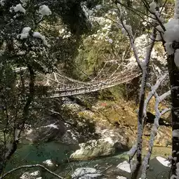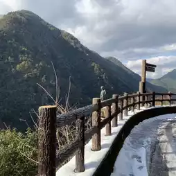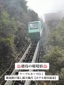The open-air bath at the bottom of the Iya Valley, which you can reach by cable car, is about 5 minutes away, and you can enjoy the panoramic view of the cliff with a 42-degree slope.