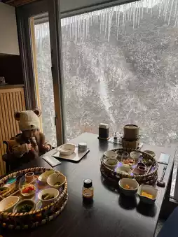 There is a cable car to the outdoor hot spring ♨️, the cable car closes at 18:30