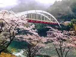 Oboke Gorge, known as one of Japan's three most secret places, is a cliff valley carved by a turbulent river. It retains the beautiful and rugged undeveloped scenery of the cliff canyon and is known as one of the most scenic spots in western Japan. In spring and autumn, the canyon is covered with a sea of pink cherry blossoms and fiery red maple leaves, as beautiful as a painting.