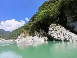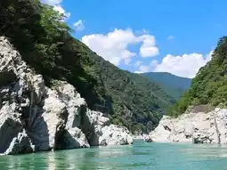 Oboke is a large canyon formed by the rapids of the Yoshino River. It is about 8 kilometers long and is famous for its marble-like rocks and V-shaped canyon landforms. The best way to visit, besides walking, is to take a cruise to experience the rapids of the canyon!