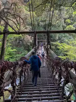 This suspension bridge is woven from shirakuchi vines and sways a lot, with gaps in the flooring that make it feel quite thrilling.