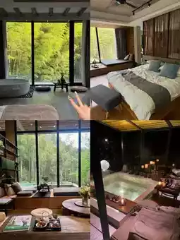 ✅ The rooms are really stunning! Panoramic floor-to-ceiling windows framing the entire bamboo sea 🌿! You can watch the clouds drift while lying in bed, so cozy~ Especially the rooms with private hot springs, soaking in the hot spring while stargazing at night ✨ pure happiness!