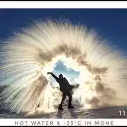 - Pouring water turns to ice instantly, creating "ice mist fireworks"