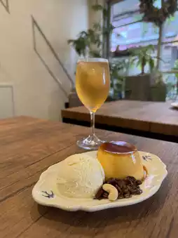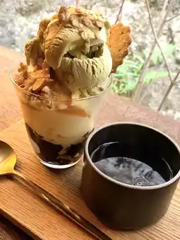And warm roasted green tea—a truly delightful parfait.