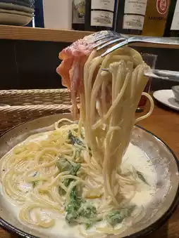 The pasta sauce is rich and delicious.