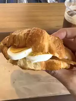 A simple sandwich: a boiled egg and bacon on a croissant.🥐