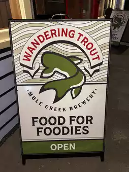 A 3-minute drive takes you to the town of Mole Creek. There’s a brewery called Wandering Trout, so we decided to visit the pub. Unfortunately, the canned beer for takeaway was already sold out, and only tap beer was available.