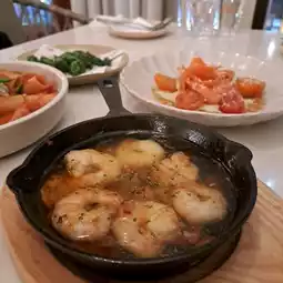 There are four starters, the Iberian ham cream fries are crispy and the fries filling is savory and smooth. Spanish green peppers are spicy, green peppers are fresh and sweet. Smoked salmon tomato avocado salad was fresh, garlic olive oil prawns were crispy, garlic olive oil was very crispy.