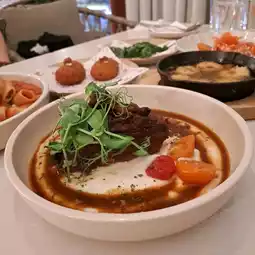 Braised beef cheeks in red wine with creamy mashed potatoes