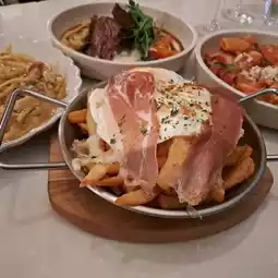 French fries with rich flavored Iberian ham, crispy and delicious.