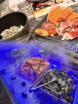 Delicatessen; breast pigeon, lobster spaghetti, flower jelly, salt-grilled beef tongue, garlic baked oysters, garlic baked scallops, skewers chicken kidney, crab congee, caviar goose liver toast .....etc