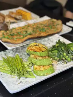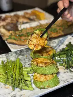 Also ordered grilled green melon, Thai asparagus and leek flowers