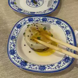 The top of the instant pan-fried buns is golden and crispy. Bite open the soup-filled pan-fried buns, and the rich soup bursts out. It is fresh and not greasy. The filling is made with fresh plum head and lean meat. The meat filling is tender but not fatty.