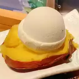 There is tofu flavored ice cream on the sweet potato. The shopkeeper also said that it should be melted to eat.