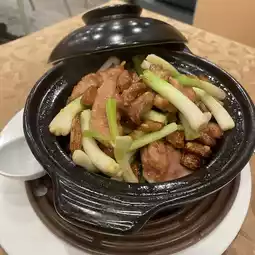 Ginger and onion baked chicken ball pot, fragrant sandblasted pot, hot sauce rich flavor.