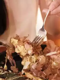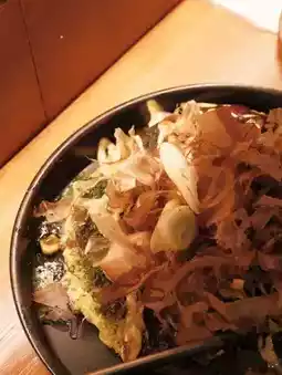 The surface is covered with dried bonito shreds and seaweed powder, which is very salty and fragrant.
