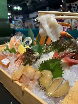 Large plates of sashimi platter Each piece is very thick cut, freshly made, ice cold taste is very fresh, personal favorite toro, grease distribution terribly even, the entrance grease immediately melted, very stunning! The peony shrimp is also good, smooth and refreshing, and frozen bacon, bream slices, etc., are our main target😄
