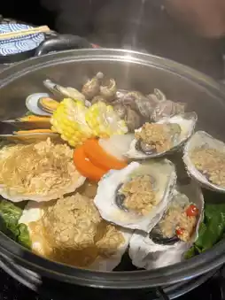 To a seafood feast, we arrived early, can choose the steamed seafood combination, garlic baked oysters, garlic flour steamed scallops, open-sided shrimp, mussels, east wind snails, steamed way can perfectly retain the seafood freshness, all smooth and delicious, the portion is also quite amazing!