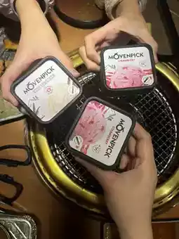 There are many snacks and desserts, less waiting time, fast service, Chinese fried chicken, Japanese balls, butter corn, sukiyaki udon, caramel daifuku, Japanese marshmallow, puffs, cheesecake, most like caramel daifuku Each person will also receive a cup of Movenpick ice cream!