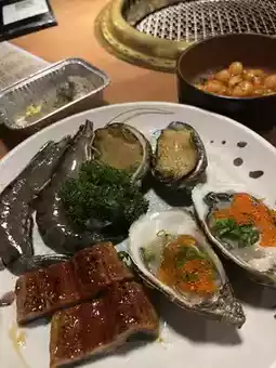 Seafood has this time the most grilled is half-shell bacon, each visually have 6, 7cm long, grilled for about 8 minutes, add a little rock salt to eat, the entrance is very fresh, the taste is bouncy! There are also eel, vanilla butter scallops, buttered Hiroshima oysters, prawns, and cuttlefish fillets.