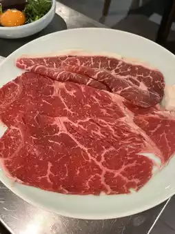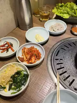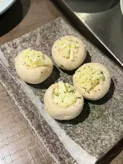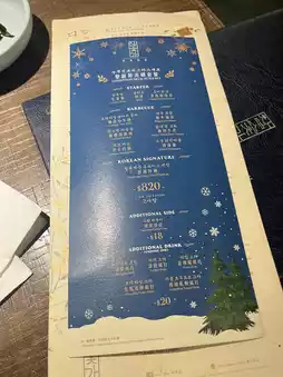 This time, we chose the Christmas set for two ($820) at this restaurant. The set includes unlimited side dishes such as kimchi, sesame lotus root, and more. For the main course, we wrapped premium veal, wagyu platter, brisket, and thinly sliced beef tongue in lettuce, dipped in sauce, and it was delicious! The cheese mushrooms and grilled pineapple were just average.