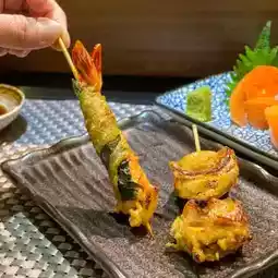 🦐 Grilled Shiso Leaf Chicken Skin Shrimp Skewer $48