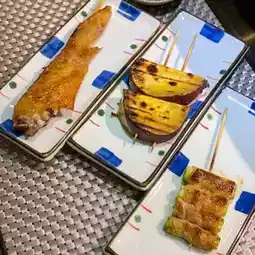 On Baibu Street in Mong Kok, there's a two-story izakaya. The ground floor has a bar counter, while the upper floor features Japanese-style Tatami seating, giving it a strong Japanese vibe! Besides skewers and drinks, the izakaya also offers sushi and sashimi, providing a wide variety of options.
