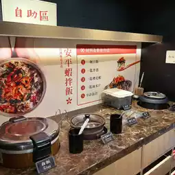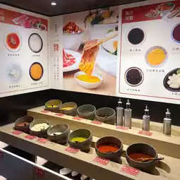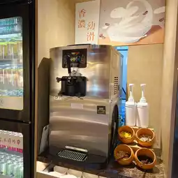 In the buffet area, there are a variety of sauces, vegetables, drinks, ice cream to pick up ~~