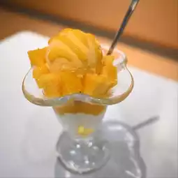 Fresh mango parfait cup paired with rich mango ice cream, refreshing and sweet😊