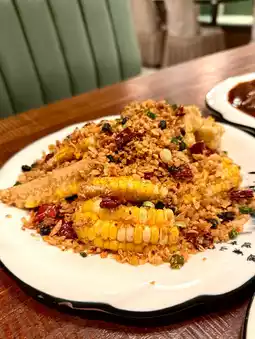 Sweet corn pieces paired with crispy typhoon shelter fried garlic. The flavors complement each other well, fragrant without feeling greasy.