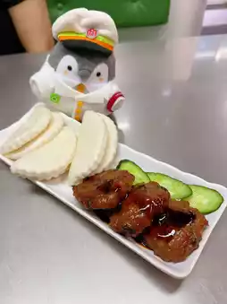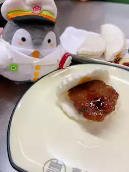 This time, I came to Mong Kok Tung Choi Street with my 🐧🐧 friends to visit this dim sum shop full of authentic Hong Kong vibes❤️ There’s already a big beef stall photo spot at the entrance waiting for the 🐧🤣 They even have a beef knife for you to take pictures with🤣 Inside the restaurant, the decor resembles a nostalgic Hong Kong-style cinema, very atmospheric🥰 I heard there’s even an MTR photo spot upstairs😍 Unfortunately, it was during the restaurant’s air-conditioning cleaning time, so it wasn’t available to see🙂↔️