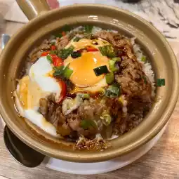 The claypot rice with Chinese sausage and liver sausage is delicious, with the fragrant oil fully absorbed into the rice 😌