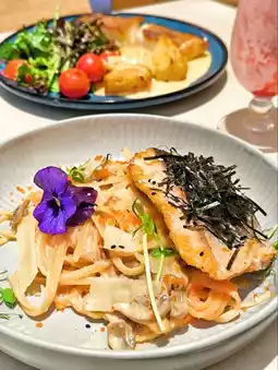 ✨Pan-fried salmon with mentaiko cream sauce and linguine $138