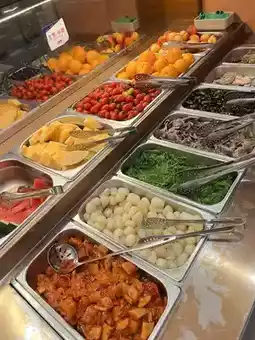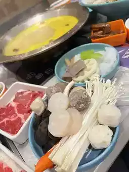 Tonight, I went to Mong Kok for a Taiwanese hot pot buffet. Wow! The place was packed, but luckily we had a reservation. The staff quickly arranged a table for us, and we immediately chose the soup base. Since I don't like spicy food, I opted for the Golden Soup Fish Maw Pot. The soup was incredibly rich and aromatic, with plenty of ingredients!