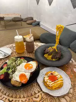I actually visited this cafe quite a while ago, mainly because its name caught my attention. The cafe features a pure white theme and spans two floors, with the upper level designed in a Bohemian vacation style. I still remember their unique coffee flavors, perfect for someone like me who doesn’t know much about coffee but enjoys trying new tastes. This time, I decided to try their dishes!