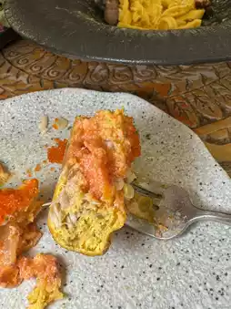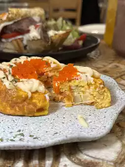 The portion size is just right, with a savory burst of mentaiko filling complemented by diced potatoes and crab meat. Quite good! 👍