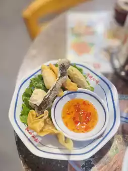 Fried to order and super crispy! My favorite fried shrimp and date balls are bouncy and fresh, and the crispy fried fish skin ~ with spicy sauce is simply unbeatable 🔥
