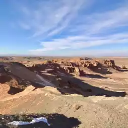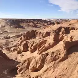 This is Bayanzag, and Bayanzag is known as the 'Burning Cliff' and is also called the Grand Canyon of Mongolia.