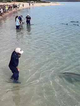 In the morning, wild dolphins come near the pier, and staff members, who are akin to environmental researchers in Japan, provide explanations about the dolphins. Since they are wild dolphins, you can't touch them, but they come close, and they are incredibly adorable.