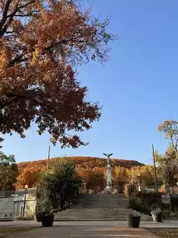 The maple leaves covering the hills range from orange-red to golden yellow, like a spilled palette of colors. Every step you take reveals stunning fall scenery. Climbing up along the trail, the wind rustles through the leaves, and you can even catch a distant view of Montreal’s red rooftops, creating an incredible atmosphere 📸