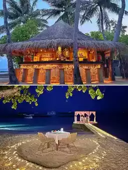 The hotel also has a lot of activities! The sea SPA is very unique. The bed in the treatment room is where you can lie down and bury your head. There is transparent glass underneath, so you can see the corals and fish underwater. In the evening, there is a romantic sea dinner and DJ night in the bar. Of course, you can't miss the exclusive beach movie night! You can choose from more than 100 movies in the hotel ~ By the sea, under the starry sky, an exclusive movie night is so romantic!