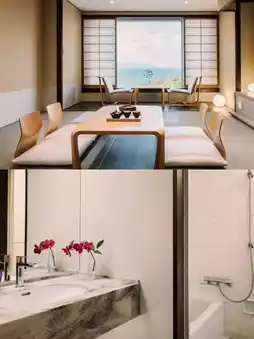 For our 2-day, 1-night trip, we booked a room at the Lake Biwa Marriott Hotel, and the view was absolutely stunning. From the room, you can see the blue lake, which changes with the light, offering different views. The combination of tatami and lake views is amazing!
