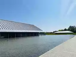 Stepping into the Sagawa Art Museum in Shiga Prefecture feels like entering a world apart. The sky reflects on the water's surface, and the building quietly floats among it, with no noise except the sound of the wind and footsteps. Sunlight glistens softly on the zinc-gray roof as I slowly walk along the waterside path, my heart slowing down with the rhythm.